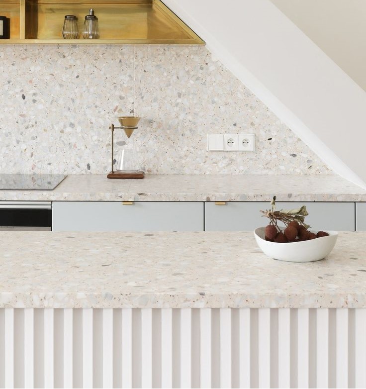 Kontrast bijelim kuhinjskim frontama možete dodati materijalom radne ploče. Dok je bijeli mramor ili kvarc u imitaciji prirodnog kamena bezvremenski izbor za bijele kuhinje, postoje i druge opcije koje mogu vizualno stvoriti kontrast i unijeti boju u kuhinjski prostor. Granitne, drvene, betonske ili ploče terazzo izgleda divno se uklapaju uz bijele fronte.