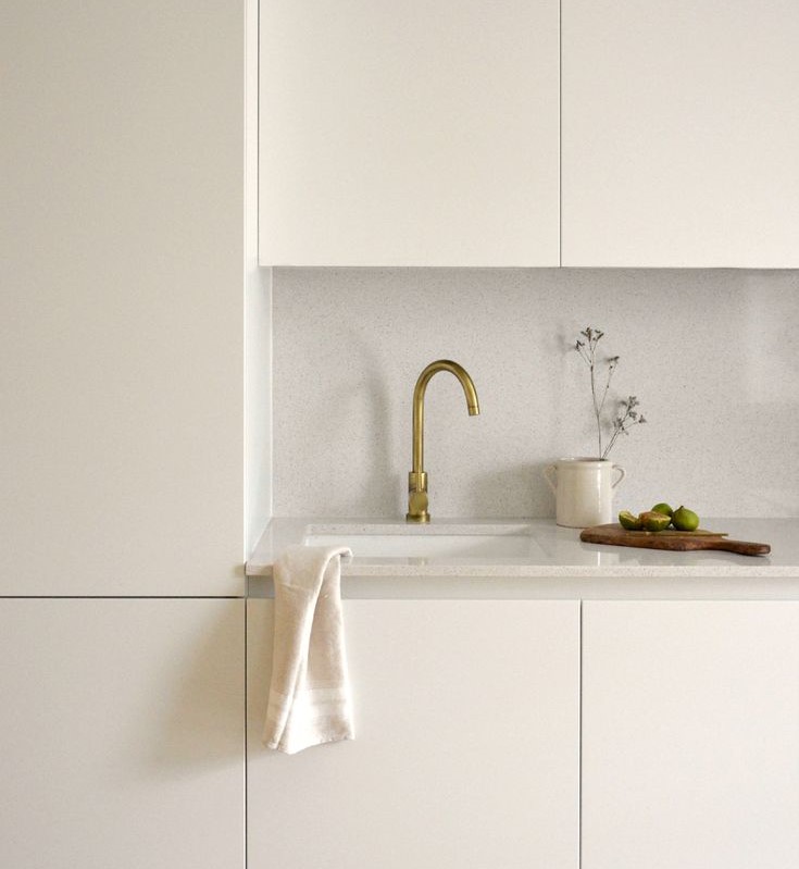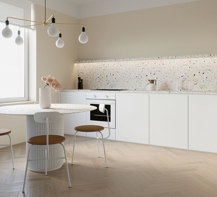 Odlučite li se ipak za posve bijelu kuhinju, razmislite o bojanju kuhinjskih zidova u off-white bež ili drugu pastelnu nijansu kako biste dobili na dubini prostora.