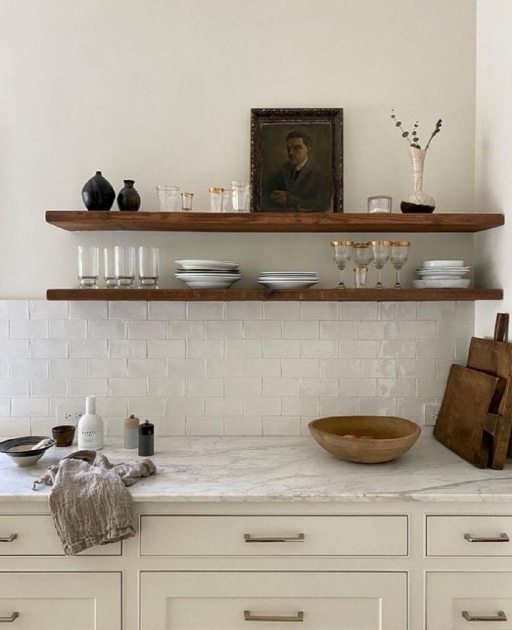 Dodajte otvorene police na jedno mjesto u svojoj kuhinji i izložite svoje omiljene predmete. To može biti draga knjiga, slika, poster, vaza ili najdraže posuđe koje čuvate za posebne prilike.