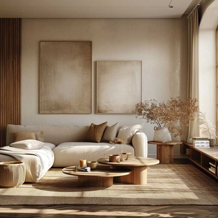 - Drveni elementi: Drvo kao materijal omiljen je izbor u japandi interijerima jer nudi izbor između različitih nijansi, zrna i tekstura koje prostoru daju rustikalan šarm, toplinu i dubinu. Drveni elementi odražavaju prirodu, a istraživanja su pokazala da njihovo korištenje u interijerima može pozitivno utjecati na raspoloženje jer svojim taktilnom i vizualnim kvalitetama stvaraju osjećaj topline i smanjuju stres. Osim toga, drvo prirodno regulira temperaturu, pridonoseći energetskoj učinkovitosti te stvara kvalitetniji zrak jer apsorbira vlagu i može smanjiti razinu onečišćenja u zatvorenom prostoru.