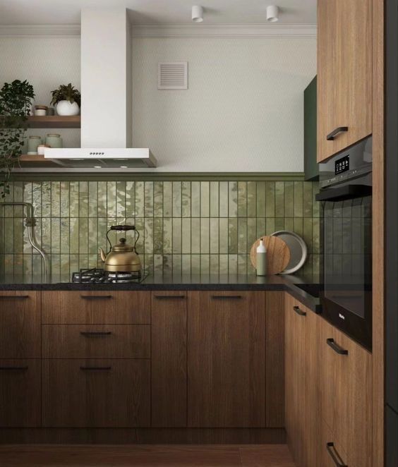 Pločice su vrlo čest odabir u dizajnu kuhinja, bilo da se radi o podnim, radnim ili zidnim oblogama. Ako je zelena kuhinja vaš izbor, pravim odabirom pločica možete stvoriti zanimljiv i harmoničan cjelokupni dizajn.