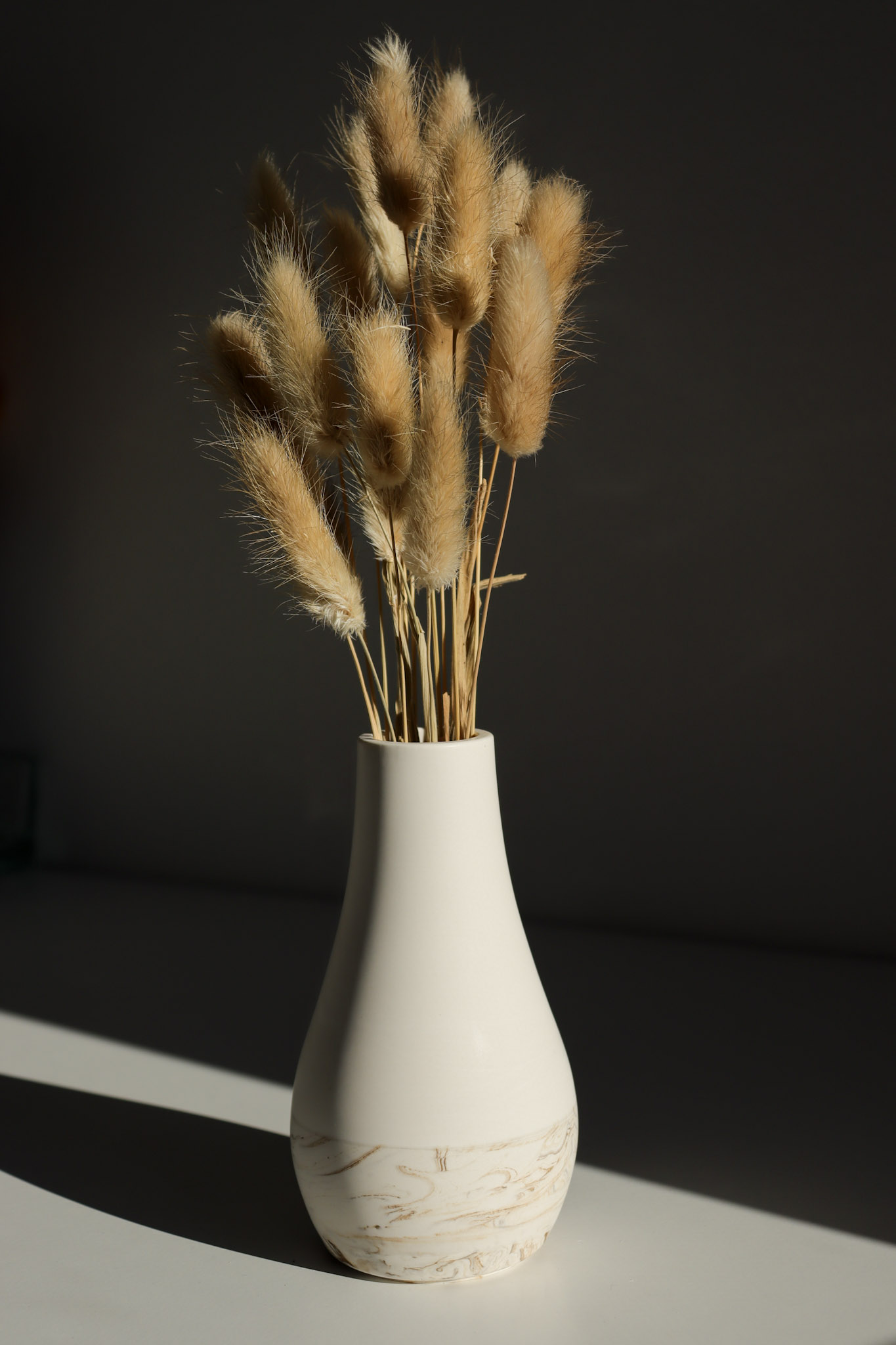 Minimalistička silueta i nježna mat tekstura stvaraju savršenu ravnotežu između suvremenog dizajna i toplog, prirodnog dojma. Donji dio krasi suptilan mramorni efekt koji svakoj vazi daje jedinstven karakter — nijedna nije ista.