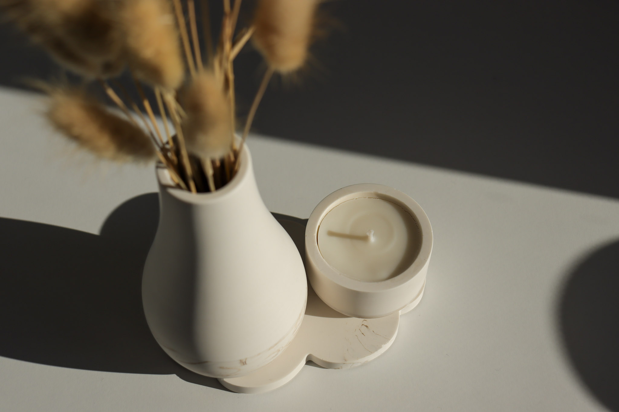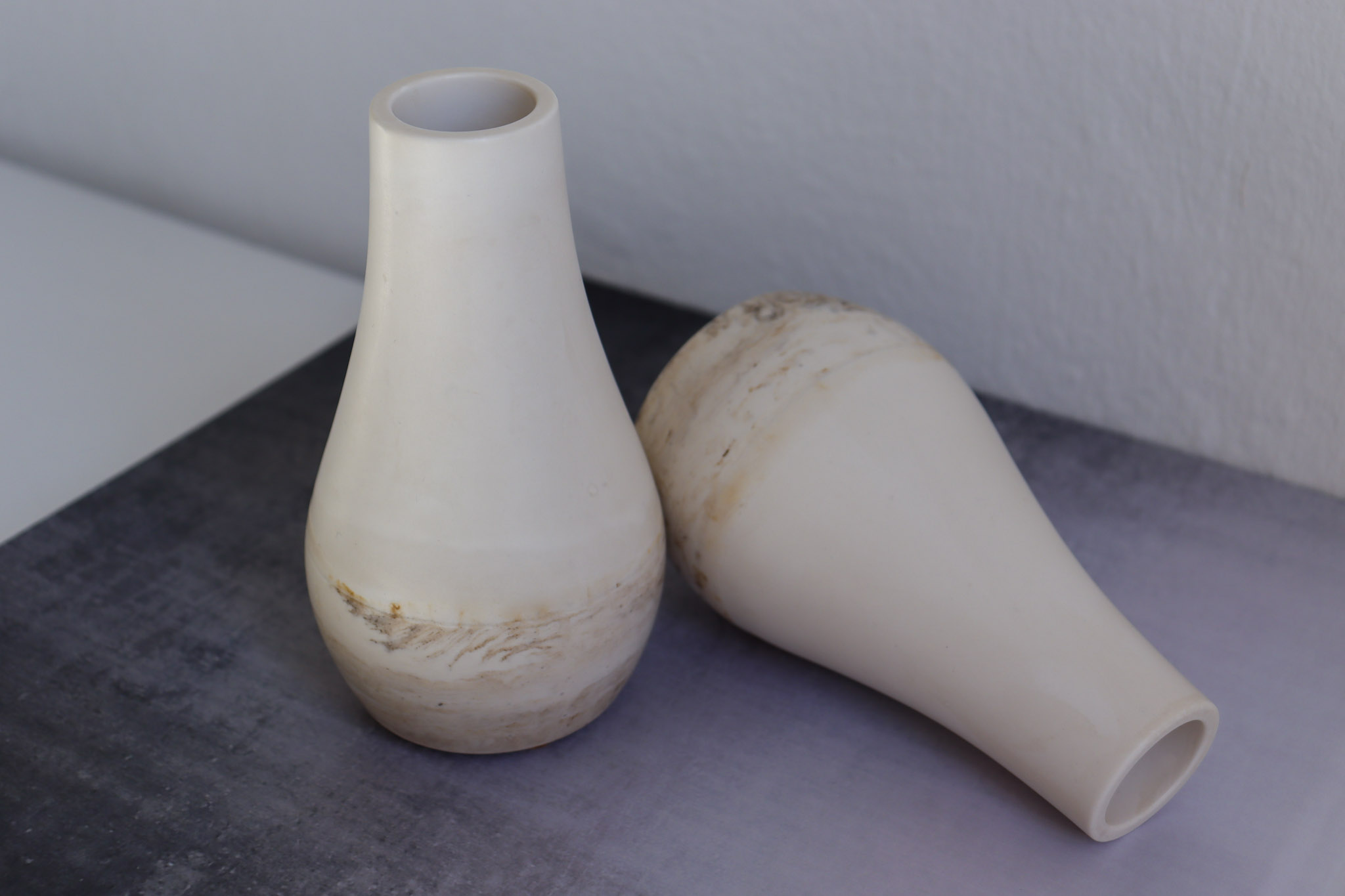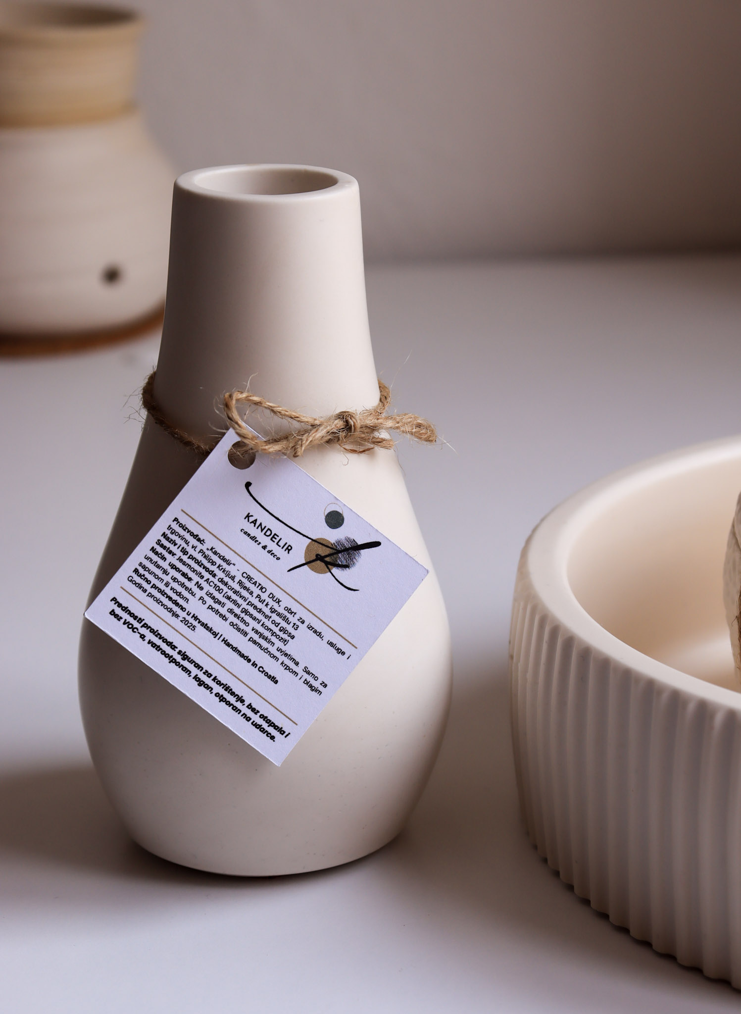 Ako probate po običnom gipsu proći noktom, ostat će trag. Kod našeg materijala to se ne događa. Tako smo se zaljubili u kombinaciju sojinog voska i Jesmonite materijala – spoj estetike, izdržljivosti i ekološke odgovornosti.
