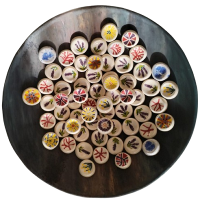 Mirko worry stone, izrađen je od bijele gline, pažljivo zaglađen, rukom oslikan, glaziran i pečen.