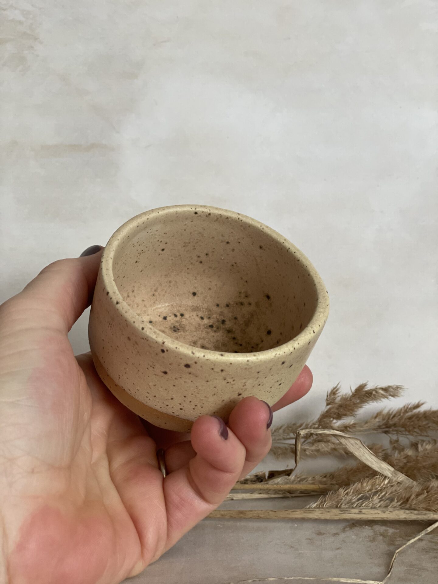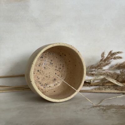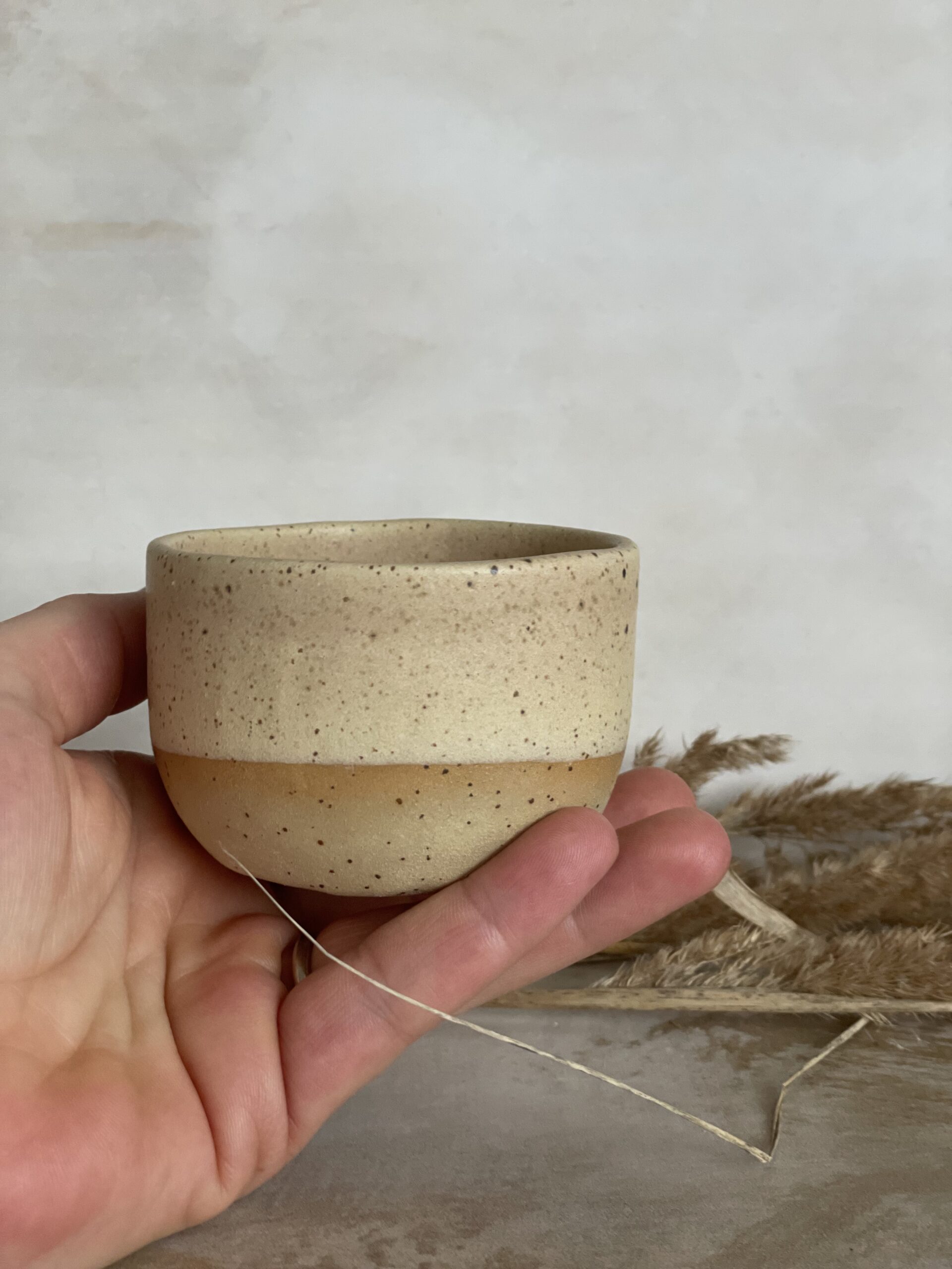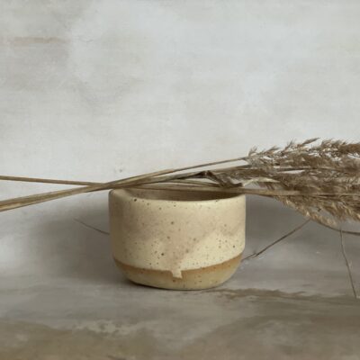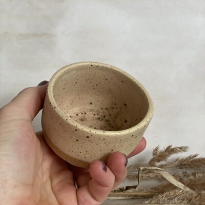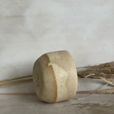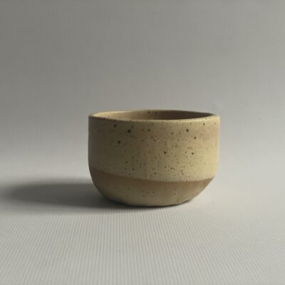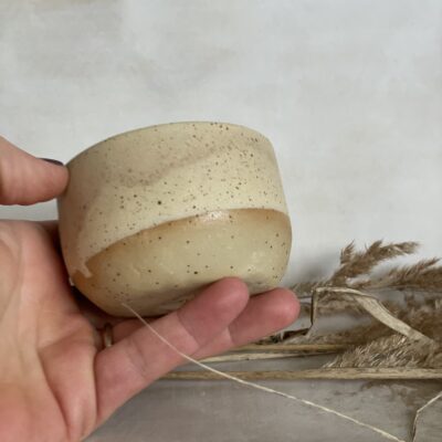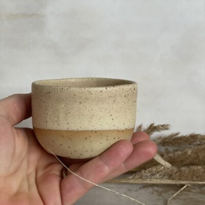 Ručno rađena keramička šalica od bež stoneware gline, glazirana bež mat glazurom i završno pečena na 1200 stupnjeva.