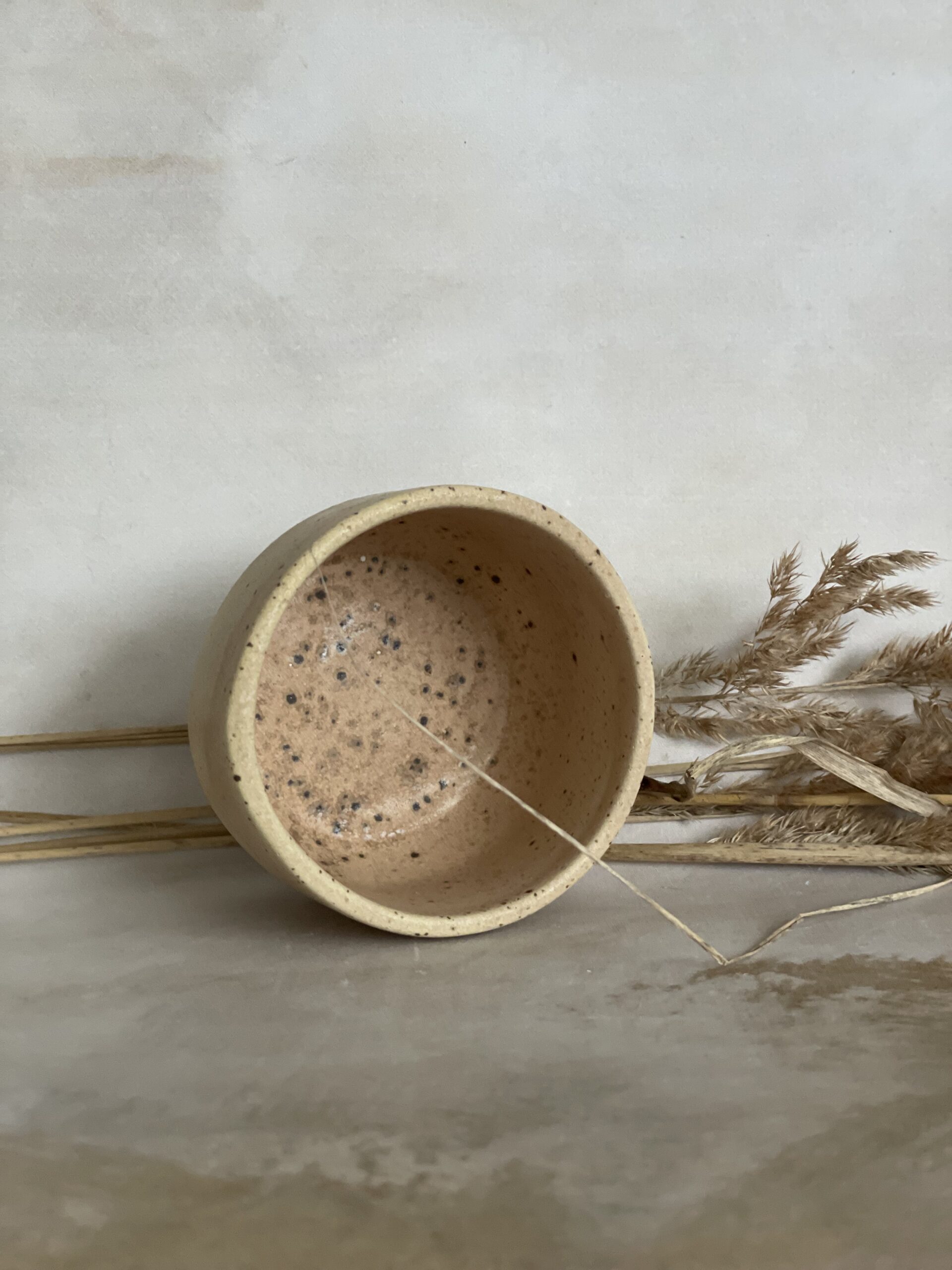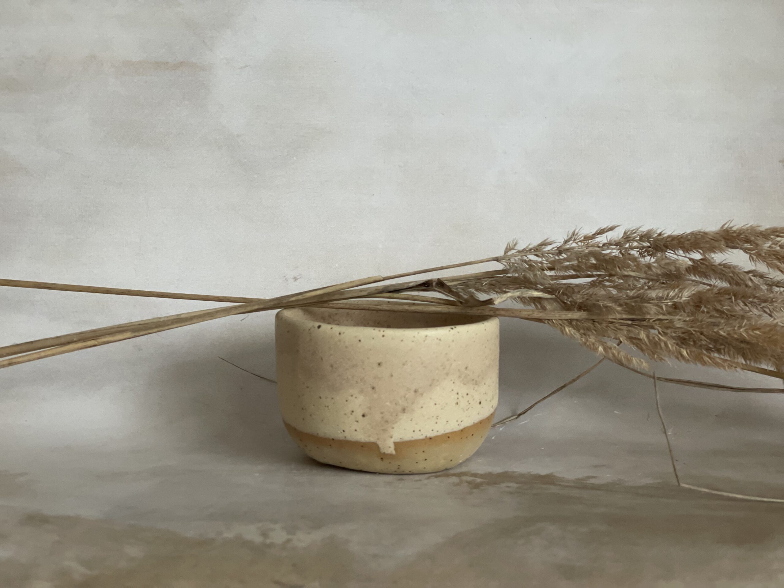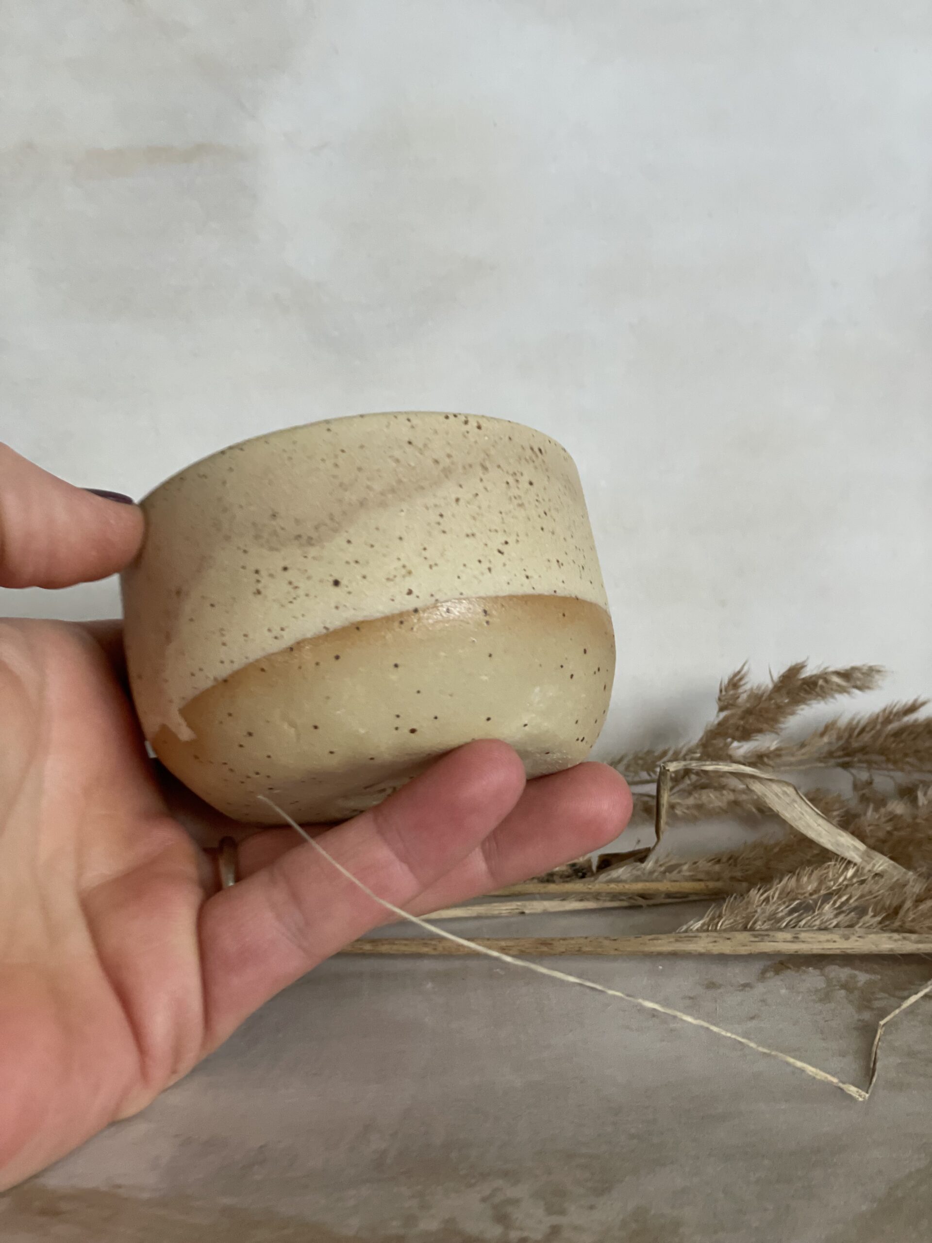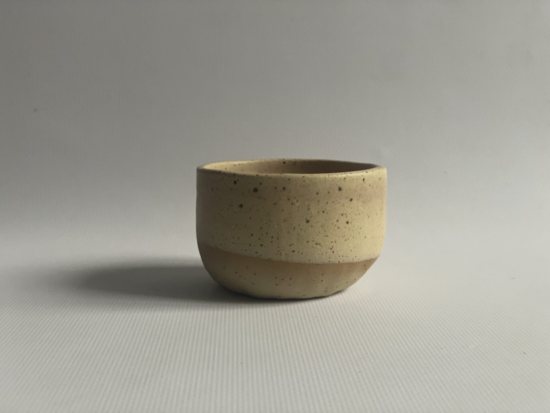 Ručno rađena keramička šalica od bež stoneware gline, glazirana bež mat glazurom i završno pečena na 1200 stupnjeva.