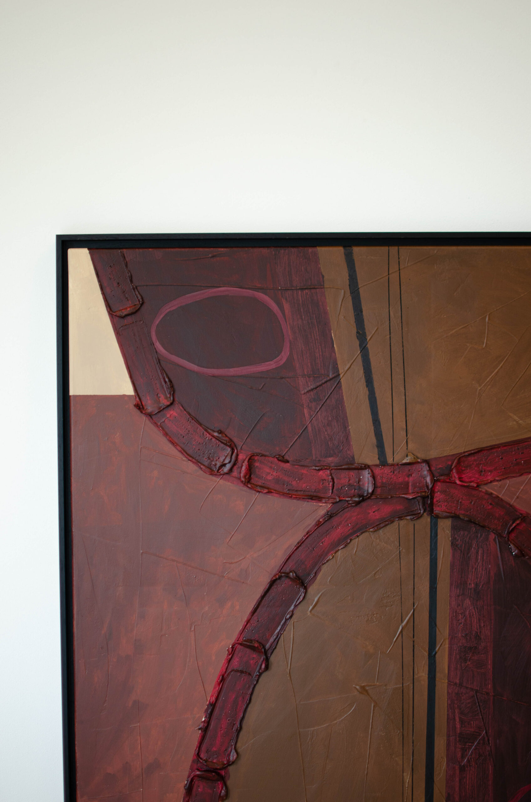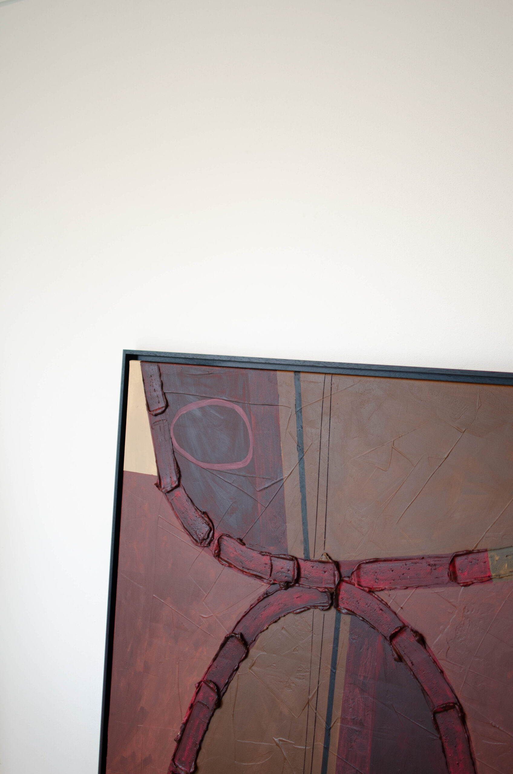 Ovo umjetničko djelo izrađeno je ručno korištenjem smjese gleta gipsa, ljepila, akrila i akrilnog veziva čime se postiže bogata tekstura i trodimenzionalni efekt.