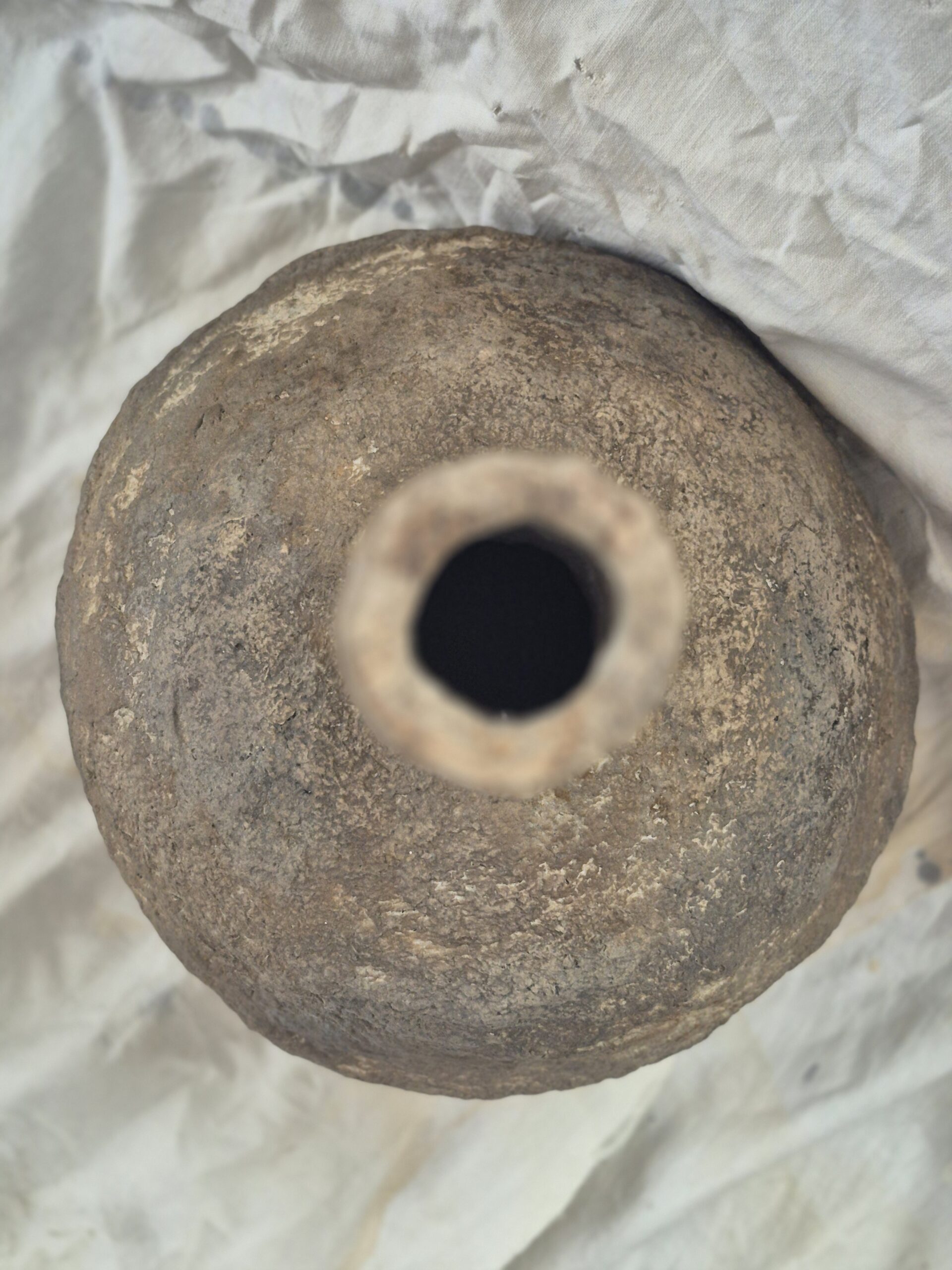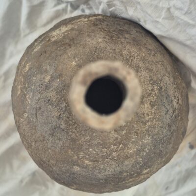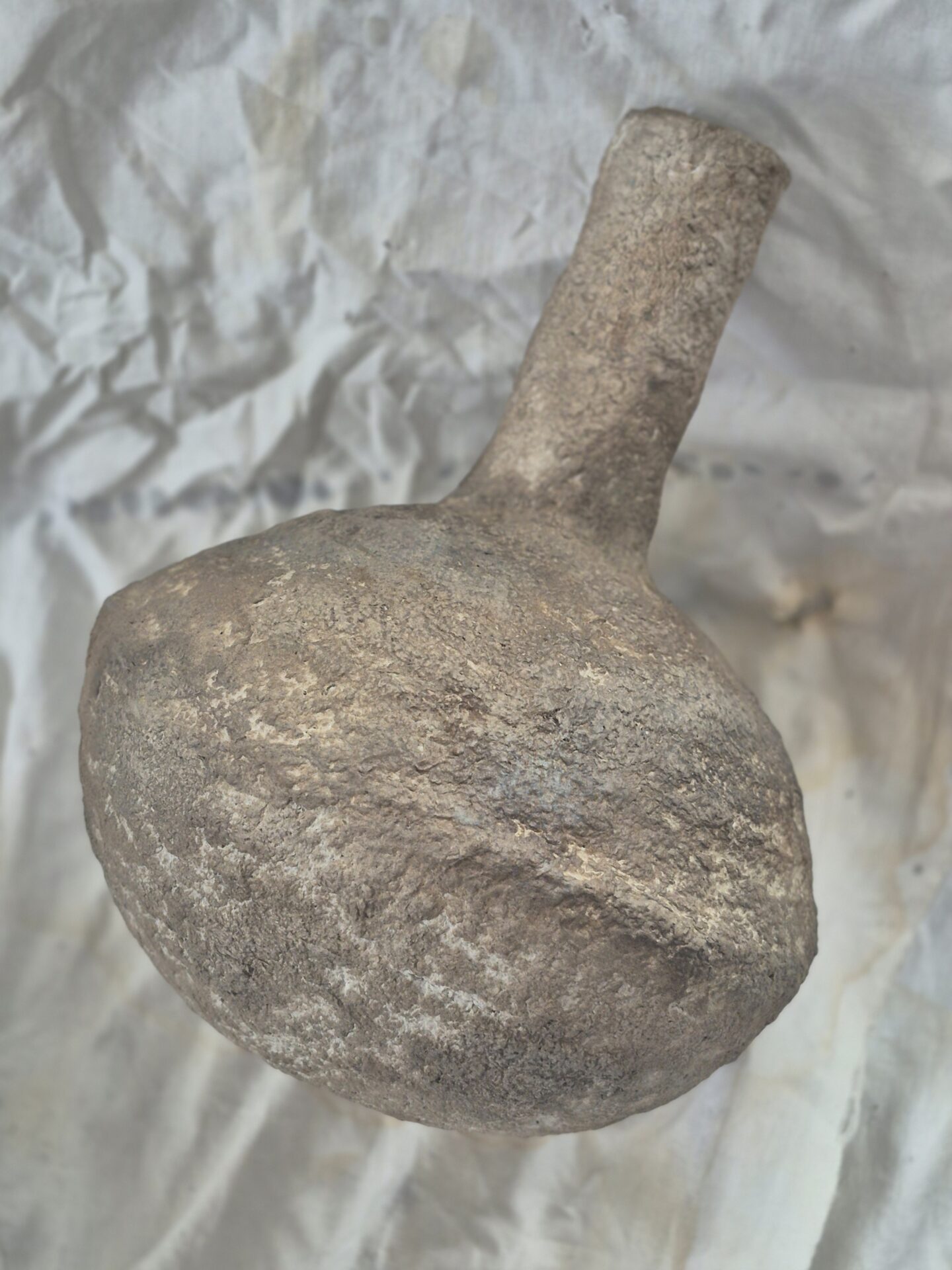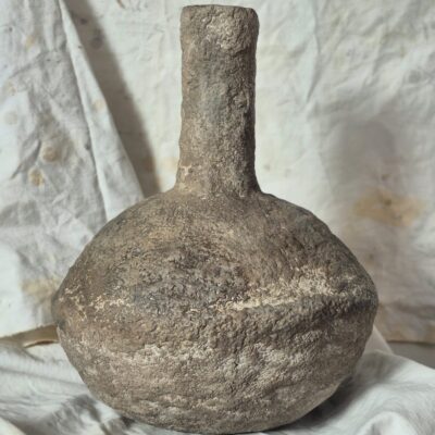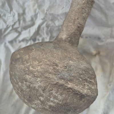 Vaza nastala tehnikom papermache. Namijenjena za suho cvijeće ili kao samostalna skulpturalna dekoracija. Dimenzije : visina 29 cm, promjer 24 cm.