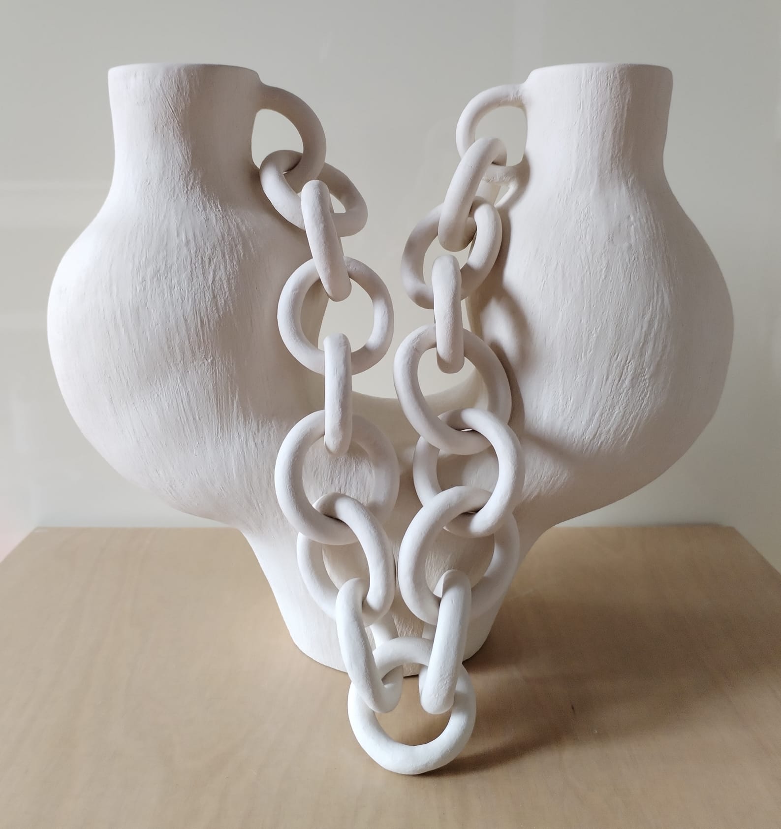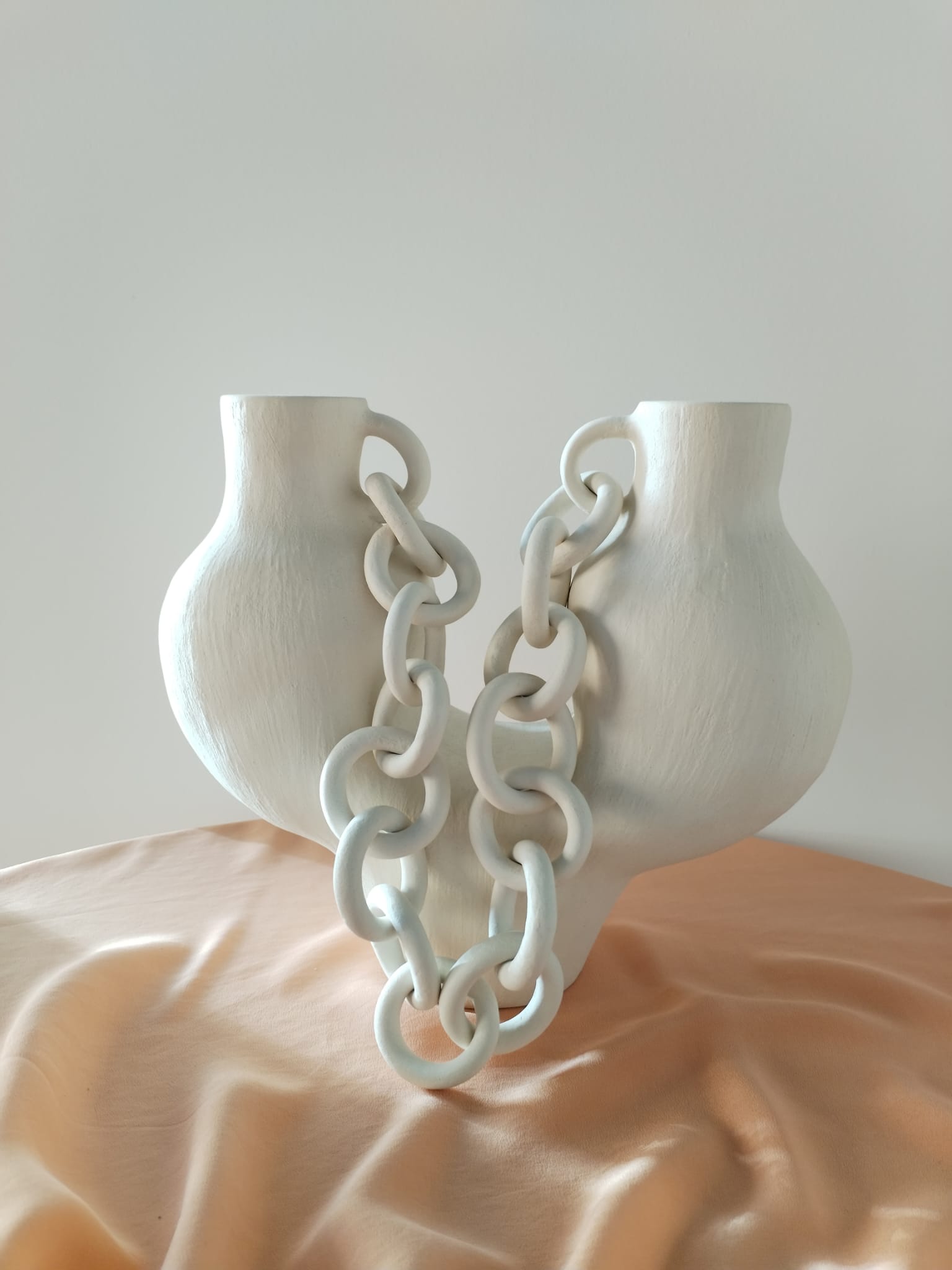 Vaza s lancem bijela - keramika, (bijela glina sa šamotom 0,5) rukom oblikovana.