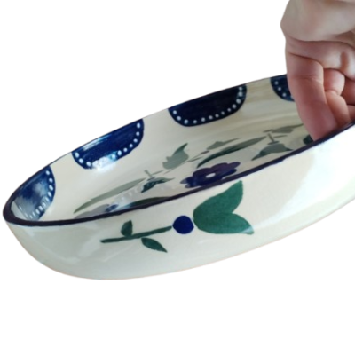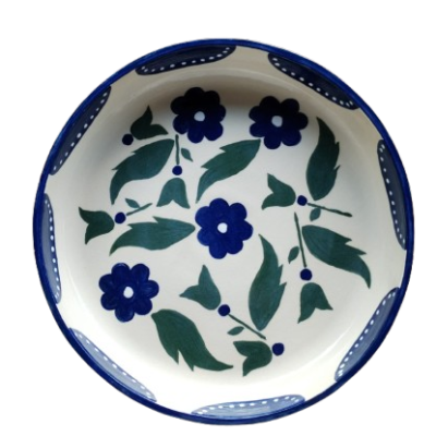 Zdjela Cvijeće SM – izrađena od bijele gline sa šamotom (0,2). Zdjela je ručno rađena, obojana engobama i glazirana. Motivi cvjetova su jednostavni s blagim retro prizvukom. Dostava je uključena u cijenu.